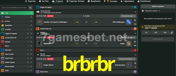 O brbrbr oferece uma grande seleção de opções de apostas em e-sports com probabilidades competitivas